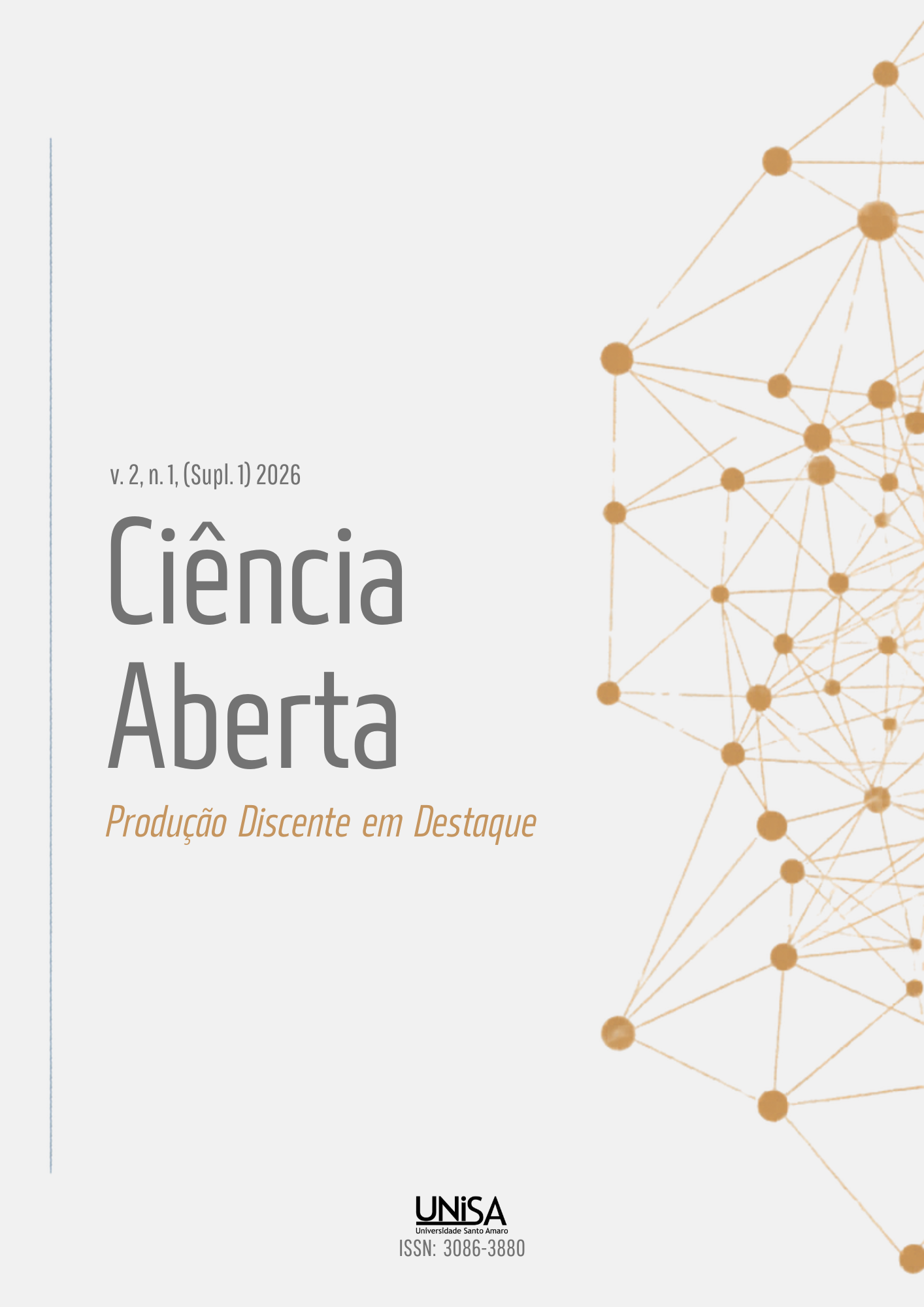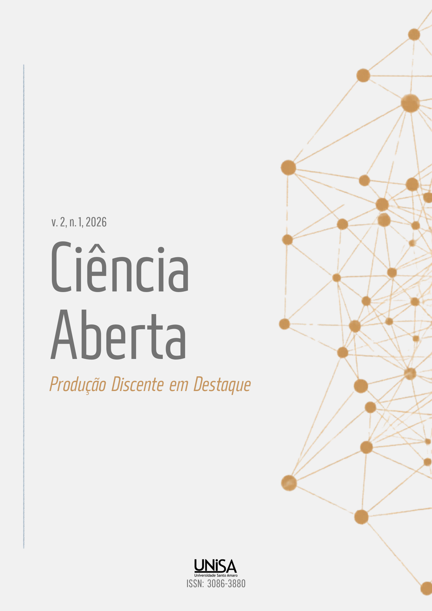 v. 1 n. 1 (2025)Prezados leitores, É com grande satisfação que apresentamos a primeira edição da Revista Ciência Aberta – Produção Discente em Destaque, periódico da Universidade Santo Amaro (UNISA) dedicado à divulgação do conhecimento produzido por nossos estudantes e pela comunidade acadêmica. A publicação nasce alinhada ao que estabelece o Art. 207 da Constituição Federal de 1988, que assegura às universidades autonomia didático-científica, administrativa e de gestão financeira e patrimonial, além de reafirmar a indissociabilidade entre ensino, pesquisa e extensão. Essa diretriz não é apenas um fundamento legal, ela expressa a própria razão de existir das Universidades. Cabe a nós, portanto, criar espaços que fortaleçam esse vínculo e deem visibilidade ao conhecimento que se constrói no cotidiano da formação universitária. Esta revista reúne artigos e resumos elaborados por estudantes de graduação e pós-graduação, muitos deles frutos de pesquisas iniciais, projetos de extensão, experiências práticas e trabalhos de conclusão de curso. São produções que, por diversos motivos, nem sempre encontram espaço nos periódicos tradicionais, embora representem contribuições importantes — seja pela originalidade, pelo impacto social ou pela pertinência às questões que atravessam a vida universitária e a sociedade. Nosso objetivo é oferecer um canal acolhedor e rigoroso para essas vozes em formação. Acreditamos que divulgar o que se produz dentro da universidade, especialmente por seus estudantes, fortalece a cultura científica, amplia repertórios, incentiva novos percursos investigativos e realimenta nossos espaços de ensino/aprendizagem além de publicizar, além dos muros o que é feito na Universidade pois entendemos que, ao tornar público esse conhecimento, aproxima ainda mais a universidade de seu entorno social e reafirma seu compromisso com a democratização do saber. Convidamos você, leitor, a percorrer esta edição com curiosidade e abertura. Que os artigos aqui apresentados despertem reflexões, gerem debates e se tornem ponto de partida para novas pesquisas, parcerias e inquietações científicas. Agradecemos a todos que contribuíram para que esta edição se concretizasse — autores, avaliadores, pareceristas e a equipe editorial. Publicar uma revista exige cuidado, diálogo e dedicação, e é gratificante ver esse trabalho coletivo ganhar forma. Desejamos a todos uma excelente leitura. Prof. Dr. Luís Antônio Baffile Leoni Pró-reitor de Graduação e Inovação Universidade Santo Amaro